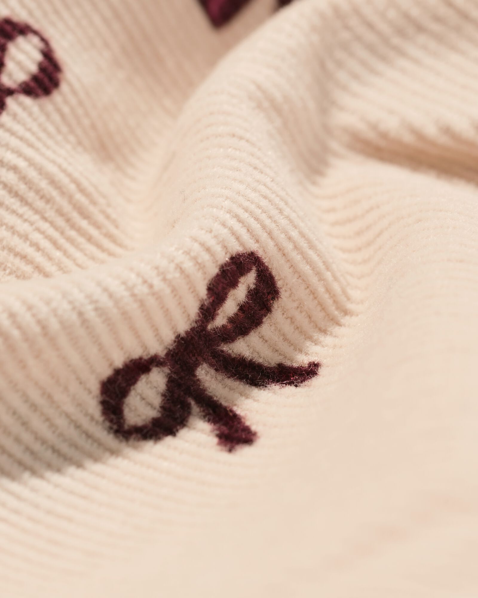Deze jurk heeft een ribstructuur, een kraag en een dessin van strikjes. Met de knopen doe je de jurk makkelijk aan en uit. De stof voelt zacht aan.