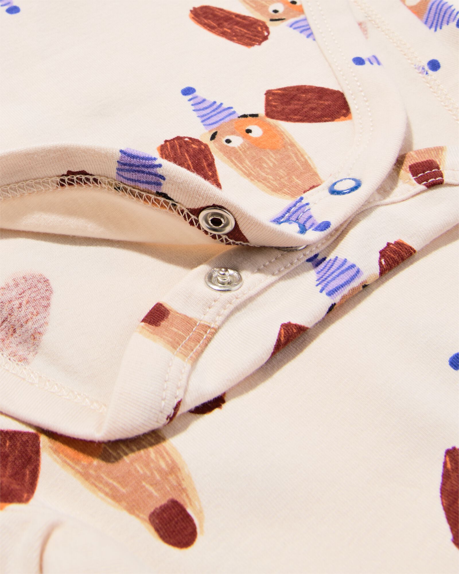 Deze romper heeft een dierenprint, lange mouwen en een envelophals. Met de drukknopen verschoon je snel. De zachte, rekbare jersey geeft jouw baby extra comfort.