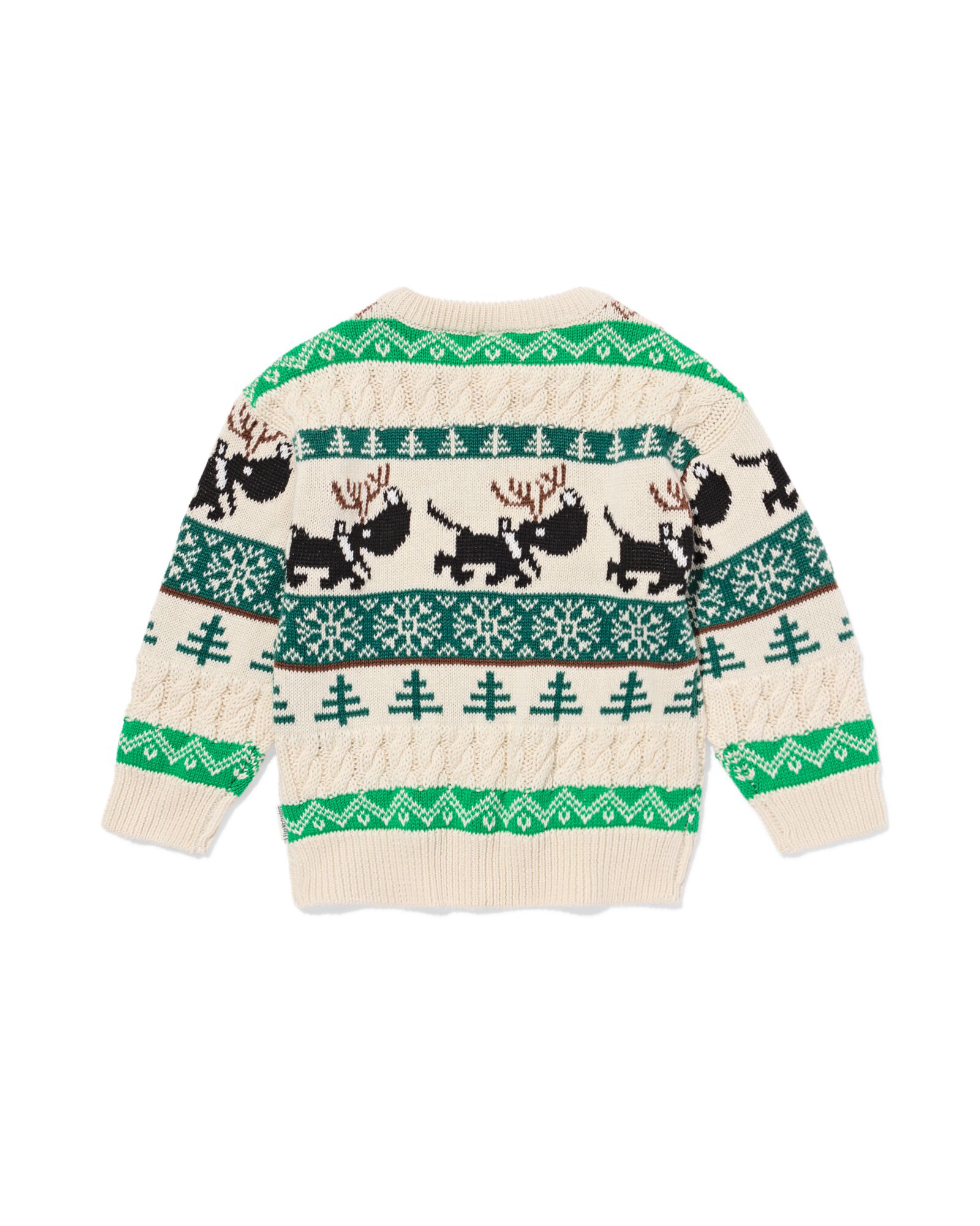 Deze fijngebreide pullover zit lekker en heeft een ronde hals, lange mouwen en knopen op de schouder. Op de voorkant zie je takkie uit jip en janneke. Gemaakt van zacht katoen uit biologische teelt.