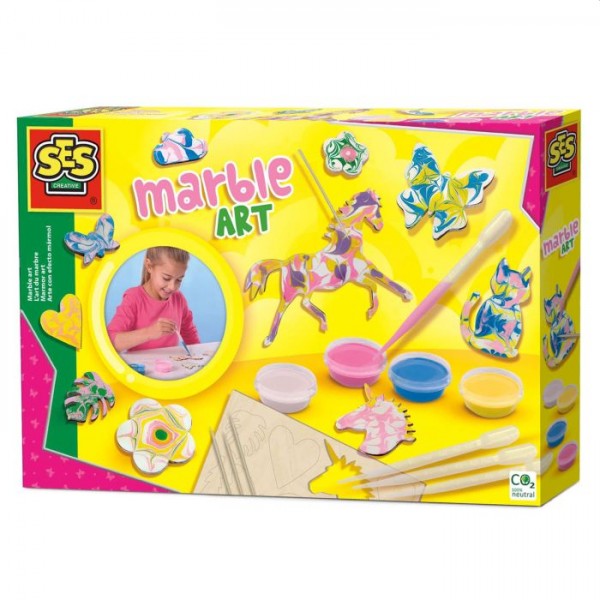 Met deze leuke SES Marble Art set kun je een paard, vlinder en nog super veel andere figuren maken! Gebruik de pipetten om de kleuren verf op het figuur aan te brengen en volg de instructies om het marmer effect te creĆ«ren. Laat de verf drogen…